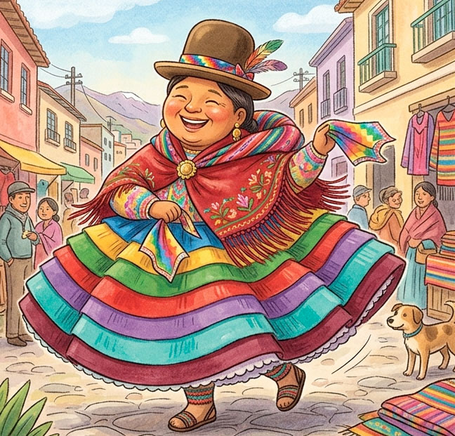 Debido al frío gustaba de vestir varias polleras sumamente largas, hasta los talones, tomando así un pintoresco aspecto.